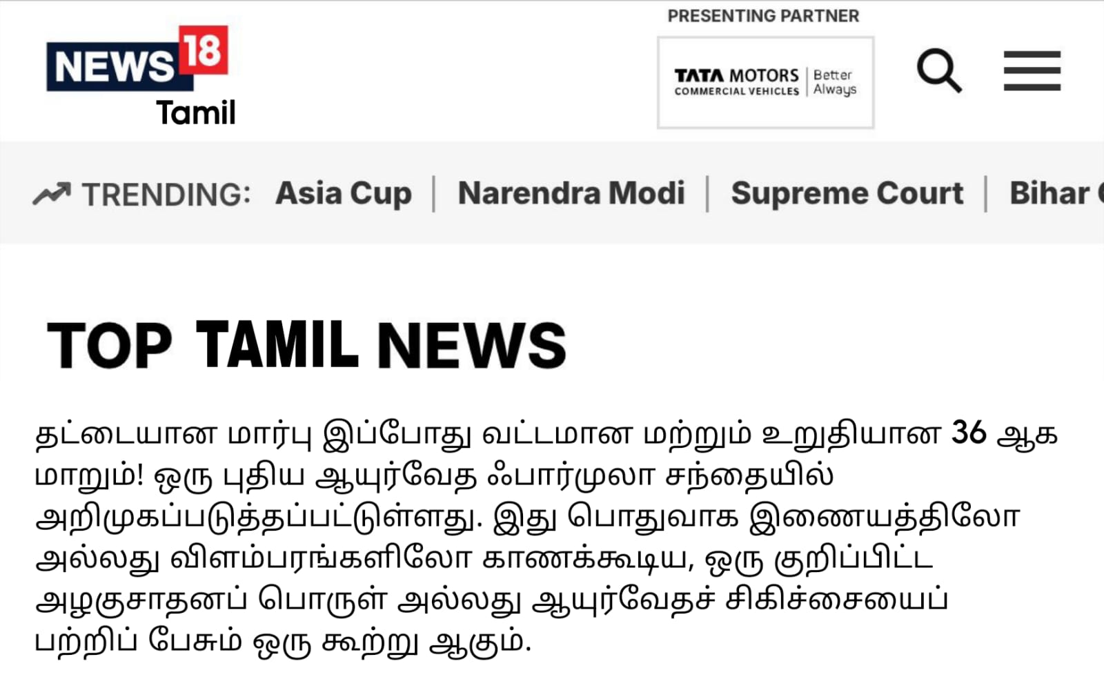 சந்தையில் புதிய ஆயுர்வேத சூத்திரம் அறிமுகம் செய்யப்பட்டது.